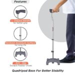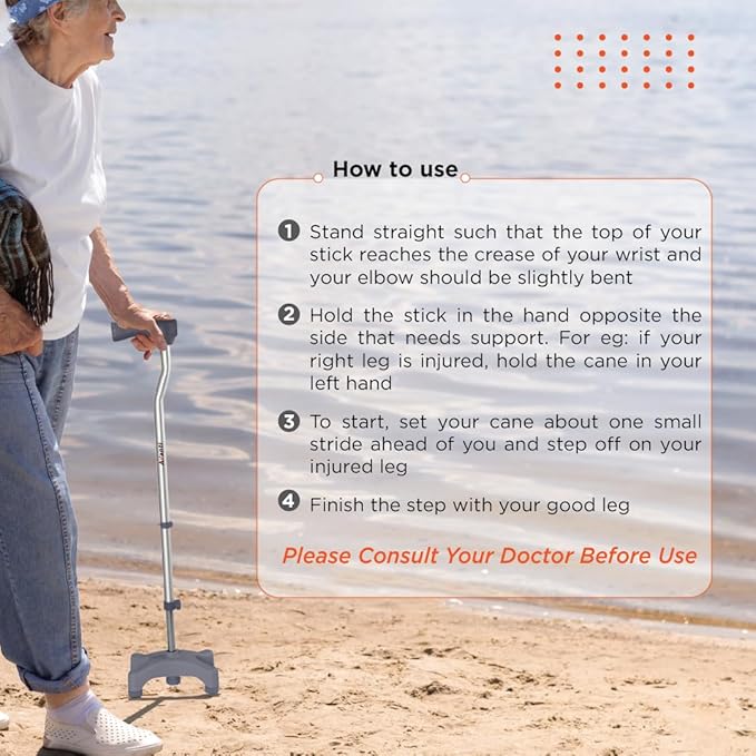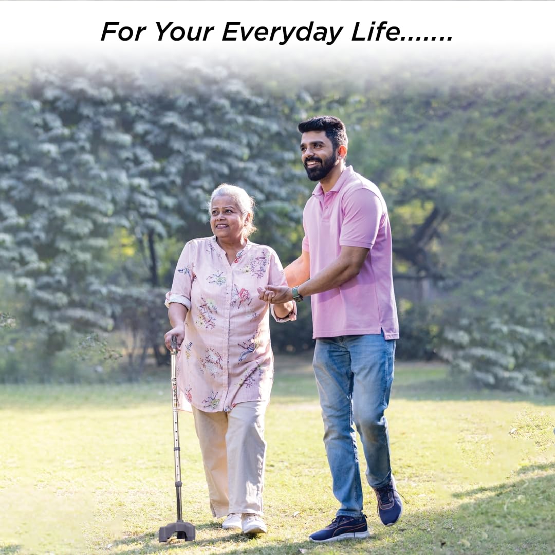 The Vissco Avanti L Shape Quadripod Stick for enhanced stability is a premium walking aid designed to assist individuals with impaired balance, walking disorders, or injuries. Its ergonomic L-shaped handle provides a comfortable grip, reducing hand strain while offering maximum control during movement. The four-legged quadripod base ensures superior stability, distributing weight evenly and preventing slips on uneven surfaces.