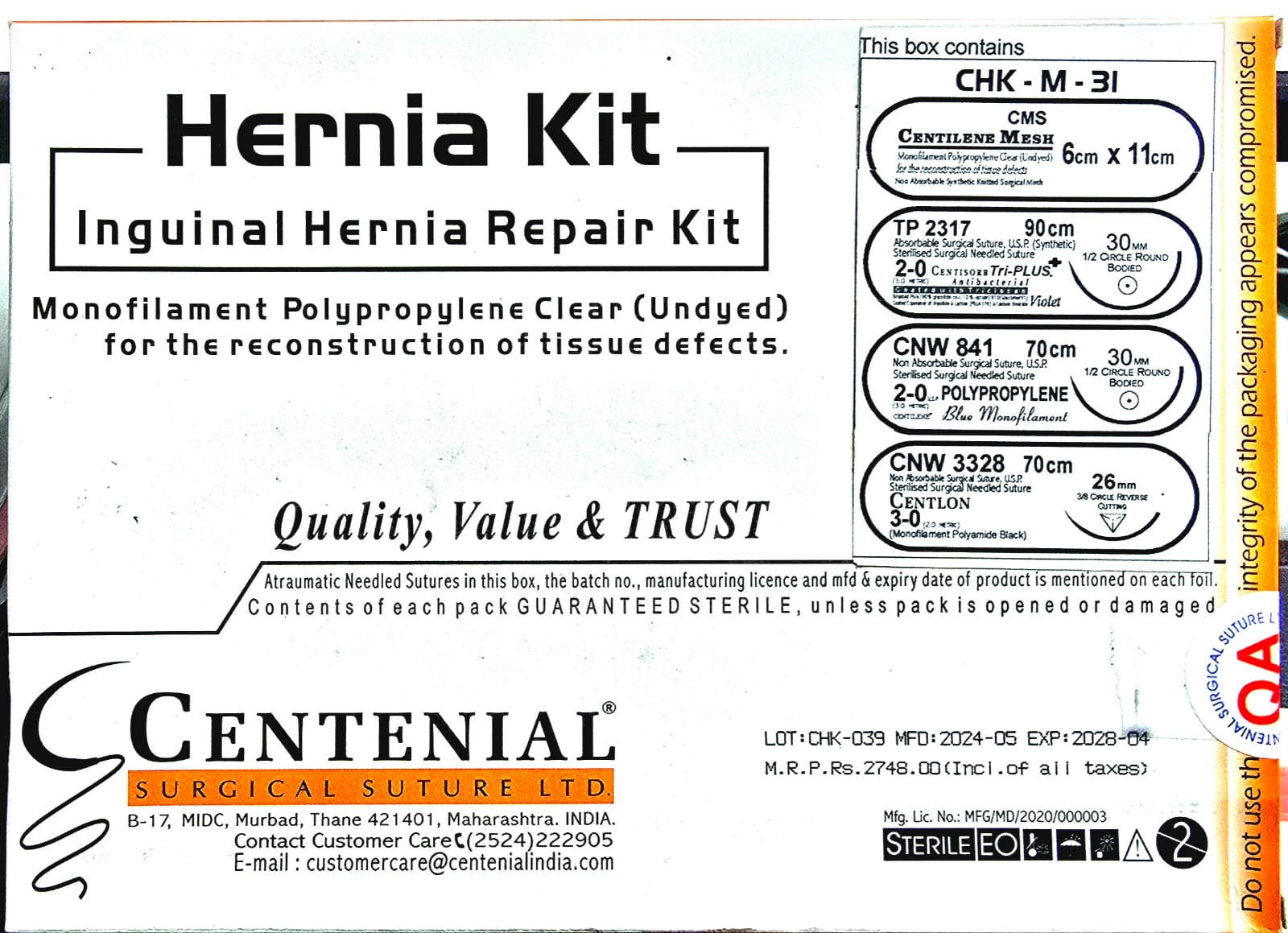 Hernia Kit 7.5 cm × 15 cm With Sutures