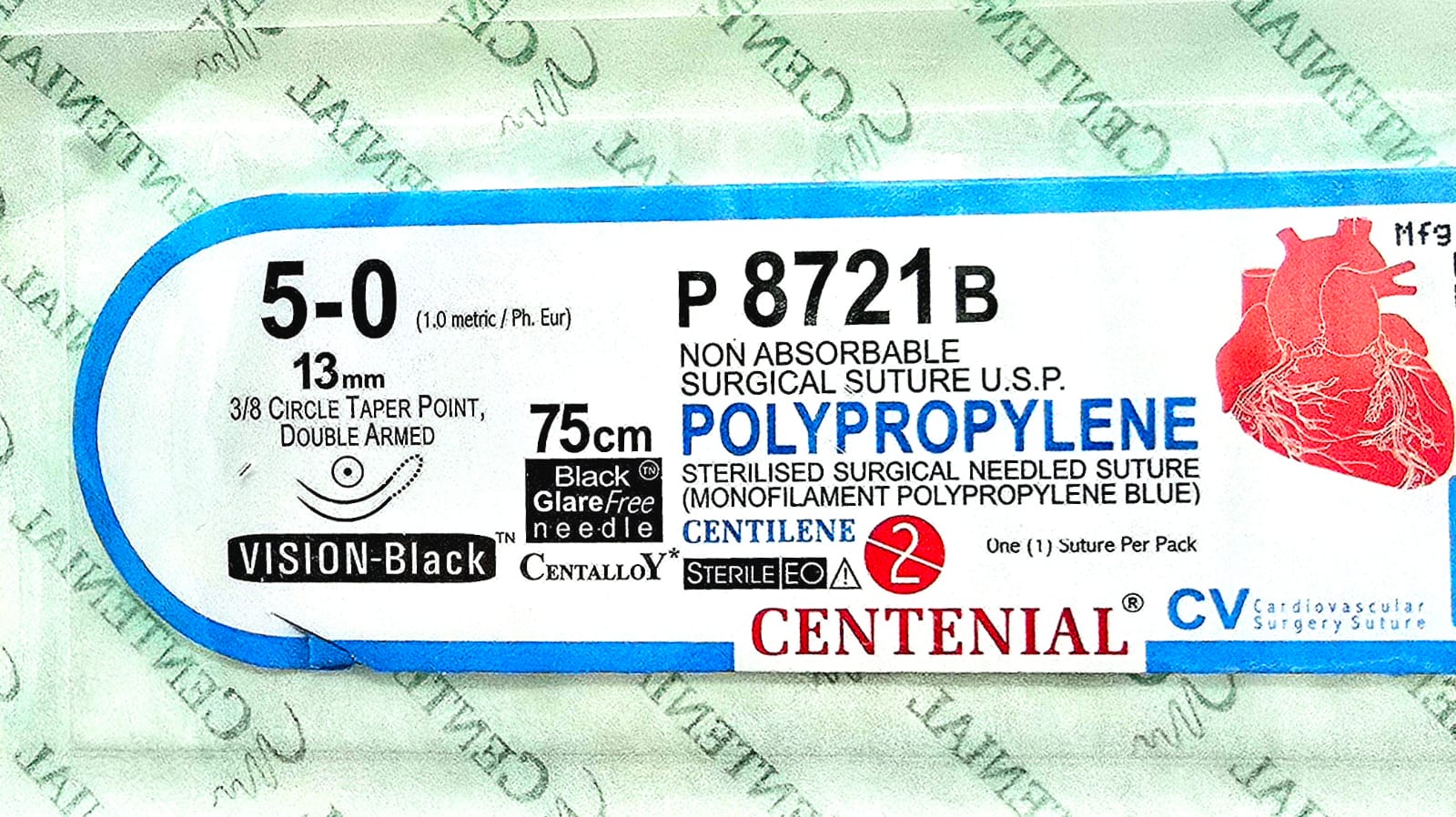 Centilene 5-0 13mm taper point black glare free needle Double armed p8721B