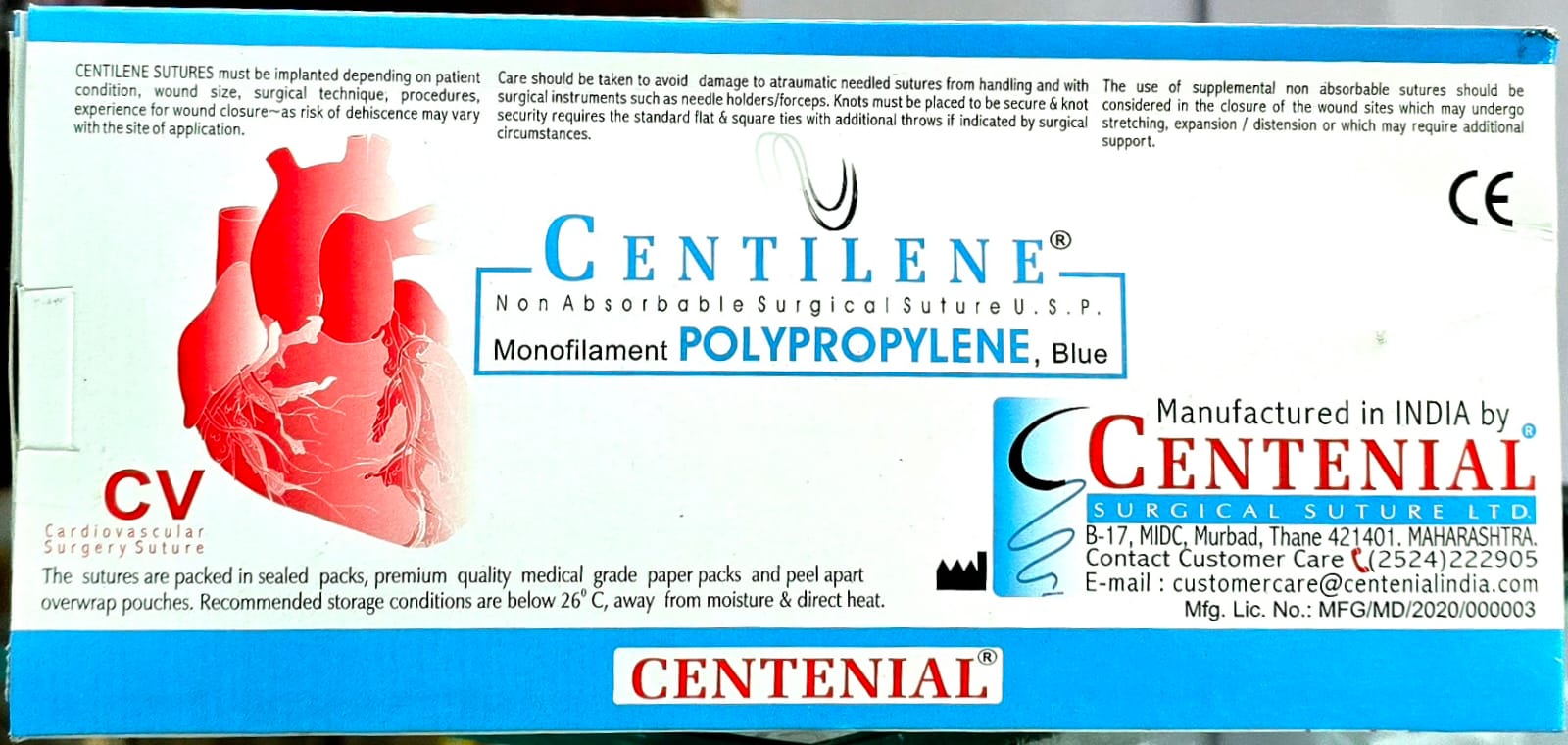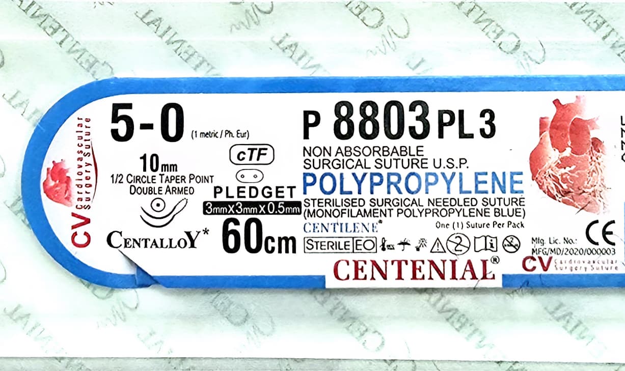 These Centilene surgical sutures are preferred by surgeons for their smooth handling, predictable knot security, and consistent performance across delicate and high-precision procedures, including cardiovascular, ophthalmic, plastic, and general surgeries. Their non-absorbable nature ensures long-lasting reinforcement, providing optimal outcomes for patients requiring permanent or extended tissue support.