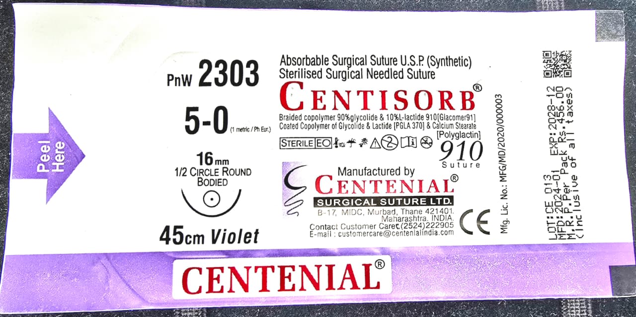 Choosing Anoop Medical guarantees access to premium, clinically tested surgical products. The CentiSorb 5-0 Round Body 45cm surgical suture is trusted by surgeons for its durability, effectiveness, and safety. With Anoop Medical Store, you receive authentic, high-performance surgical supplies that meet strict medical standards, ensuring safe and efficient surgical outcomes.