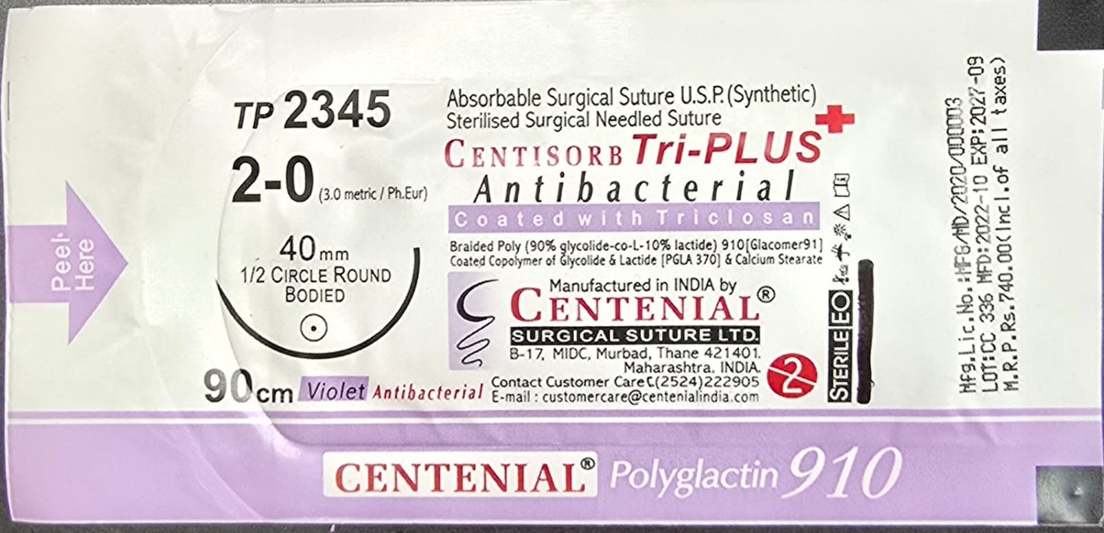 • Centisorb Plus 2-0 90cm Round Body absorbable surgical suture for safe wound closure