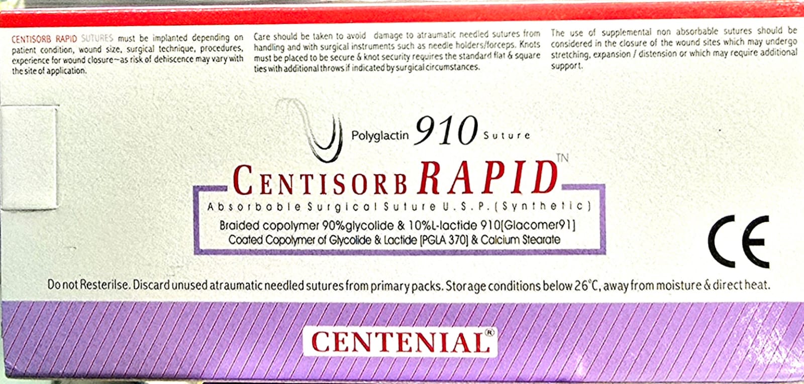 High-quality Centisorb Rapid 2-0 suture made from absorbable Polyglactin 910