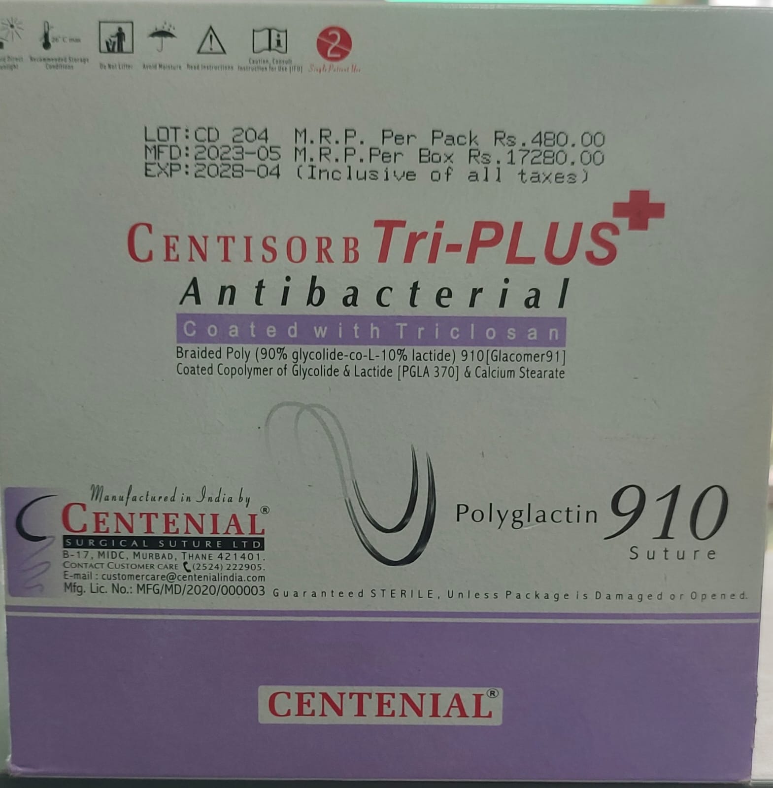 • Centisorb Tri-Plus antibacterial suture with braided absorbable material