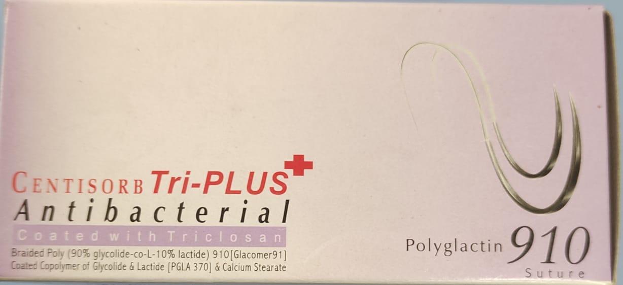 The Centisorb Tri-Plus antibacterial absorbable suture 2437 is a high-quality, synthetic, braided surgical suture engineered for reliable soft tissue approximation. Manufactured using Polyglactin 910, this suture provides excellent tensile strength during the early stages of healing while ensuring smooth handling and minimal tissue trauma. Its antibacterial coating enhances surgical safety by helping reduce the risk of surgical site infections, making it a preferred choice for surgeons looking for dependable and sterile wound closure materials.