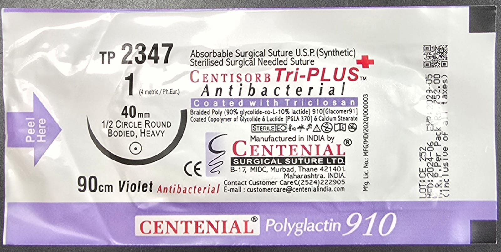100% genuine Centisorb Tri-Plus No-1 90cm absorbable antibacterial suture from Anoop Medical Surgical