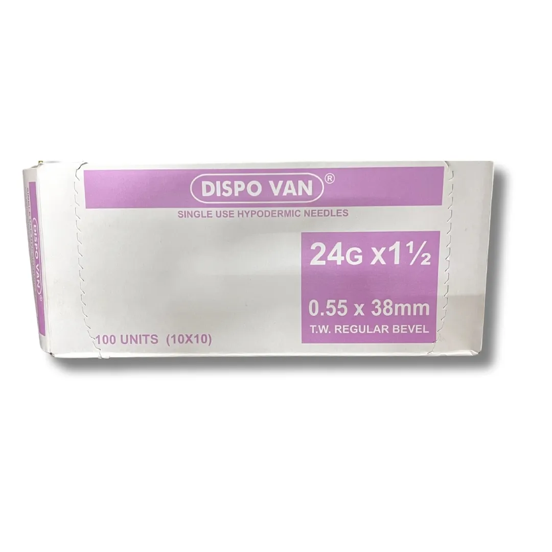 DISPO VAN hypodermic needles are precision-engineered for safe, sterile, and minimally invasive injections. The 24G needle is ultra-fine, making it ideal for low-volume, low-pain procedures such as subcutaneous and intradermal injections. Each needle is EO sterilized and individually packed to ensure aseptic delivery and patient safety.