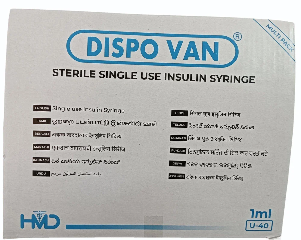 • Product Name: Dispovan Insulin Syringe 1ml (U-40)