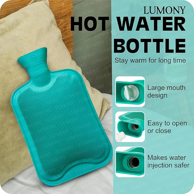 A durable, medical-grade rubber hot water bottle designed for therapeutic heat application. Ideal for relieving muscle aches, menstrual cramps, joint stiffness, and general cold discomfort. The textured surface ensures safe heat distribution and minimizes the risk of burns.