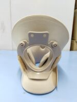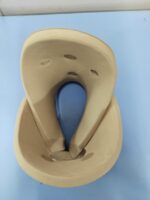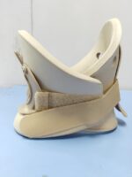 - Its two-piece design ensures easy application and removal, while the inbuilt chin cup provides stability and comfort. The tracheal opening in the front allows access to the windpipe, making it suitable for patients requiring tracheostomy or intubation. The brace is radiolucent, allowing X-rays and imaging without removal.