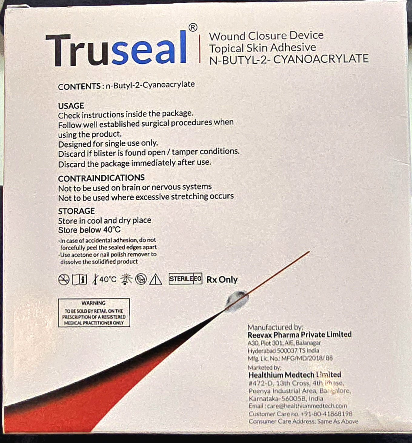 At Anoop Medical Surgical, we provide high-quality Truseal medical skin adhesive for wound closure that meets international medical standards for safety, sterility, and effectiveness. Choosing Anoop Medical Store guarantees a trusted, easy-to-use, and professional-grade adhesive that supports faster healing, minimizes infection risks, and enhances overall patient care.